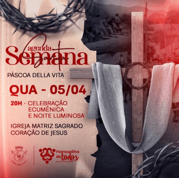 A Prefeitura de Farroupilha, através da Secretaria Municipal de Desenvolvimento Econômico, Turismo e Inovação convida a população para as atrações religiosas e culturais que ocorrerão ao longo desta Semana Santa, integrando a programação oficial da Páscoa Della Vita.